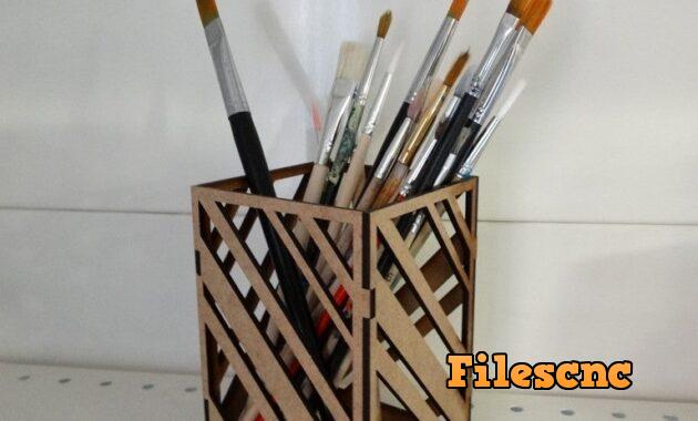 This laser-cut modern pencil holder, designed for 3mm material, offers a sleek and functional solution for organizing office tables. The DXF file enables precise cutting of wooden pieces, creating a minimalist, easy-to-assemble design perfect for holding pens, pencils, and markers. Laser Cut Modern Pencil Holder For Office Table 3mm DXF File